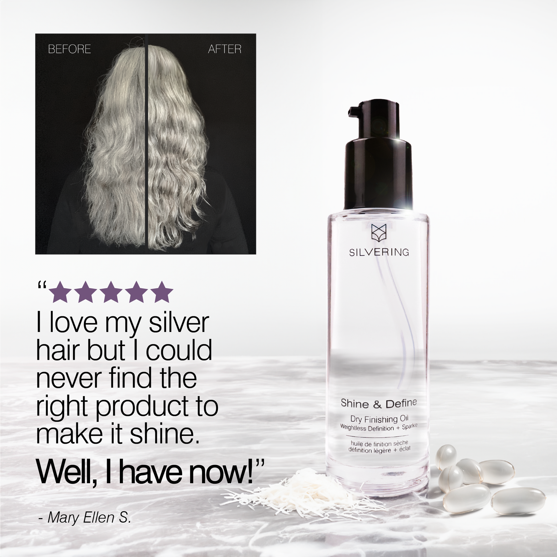 AMPLIFY YOUR SHINE without adding color or build-up. SHINE & DEFINE Dry Finishing Oil is a powerful, nutrient-rich, frizz-calming shine-booster scientifically developed to bring out the natural beauty of silvering hair's natural high and low lights.