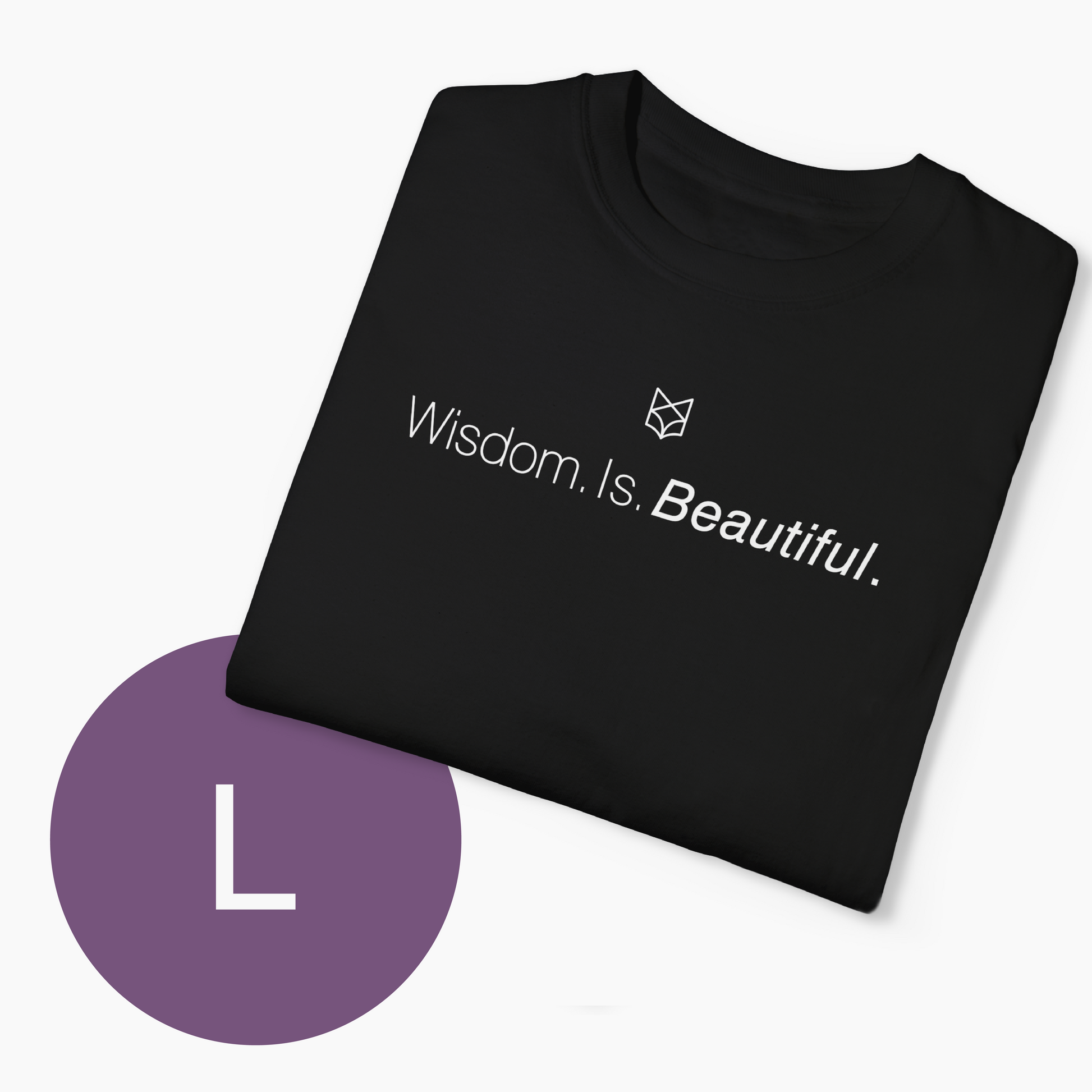 “Wisdom. Is. Beautiful.” celebrates the power and allure of lived experience, growth, and authenticity. It’s a symbol of pride for every silver sister embracing the beauty of her evolving self. Pair it with your favorite jeans or elevate it with a chic blazer.